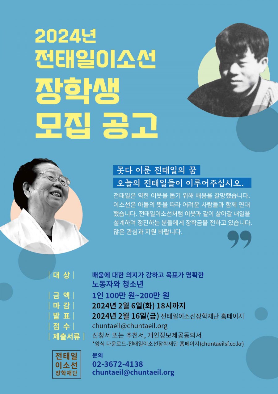 발표 : 2024년 2월 16일(금) 전태일이소선장학재단 홈페이지